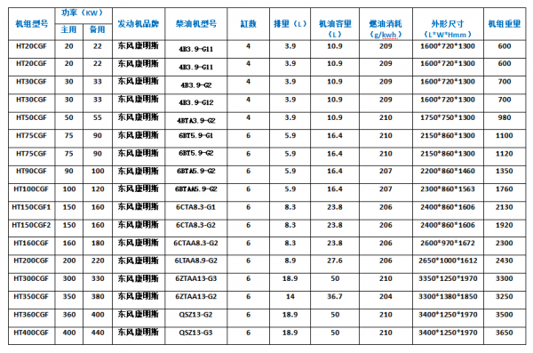 二、 康明斯柴油發電機技術參數:
